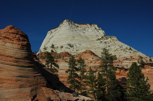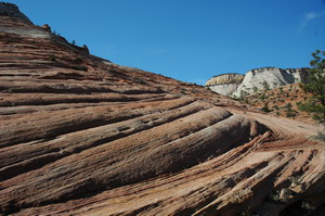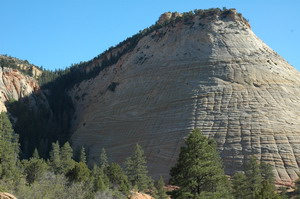 Na ontbijt vertrekken we uit Las Vegas om het volgende National Park te bezoeken, Zion NP. Dus de Interstate-15 snelweg een tijd gevolgd tot we de snelweg 9 opdraaiden om via deze weg in Zion NP uit te komen. We hadden wel het een en ander gelezen hierover maar hadden eigenlijk geen hele grote verwachtingen van dit park. Dat viel even mee zeg. Wat een schitterende geologische rotsformaties. Om stil van te worden. Het begint al als je in de buurt van Zion komt. Het landschap verandert langzaam in de bijzondere formaties waaruit een groot gedeelte van het park opgebouwd is. Ik kan over dit park misschien veel vertellen, maar jullie moeten het maar zelf bekijken op de foto's hieronder. Die zeggen vind ik meer dan mijn woorden. Een heel interessant (en vooral belangrijk iets) wat ik zeker wel wil melden is dat je met een camper of ander groot/hoog voertuig een speciale ticket moet kopen om door een tunnel (uit 1930, gemaakt voor de toendertijd gebruikelijke Model-T Fords) te kunnen/mogen rijden. Deze tunnel bevindt zich al redelijk vroeg in de route door het park. (gezien vanaf de west kant van het park) De parkrangers moeten nl. het verkeer tegenhouden zodat je met de camper in het midden van de weg kan rijden, want anders pas je er niet door. (maximale doorrijhoogte is 13ft. 6inch) Na het bezoek zijn we iets doorgereden richting Bryce Canyon NP wat we morgen gaan bekijken. We zijn neergestreken op de campground van KOA-Zion/Bryce welke langs de snelweg 89 ligt. De campground was eigenlijk net pas open vertelde de campground eigenaar, dus de camping winkel was nog grotendeels leeg. Verder was het ook geen mooie campground ofzo. (zeker in verhouding tot sommige andere KOA campgrounds waar we overnacht hebben. gelukkig was hij niet overdreven duur (iets van 26 dollar voor full-hookup) en we konden er net zo goed slapen als ergens anders.