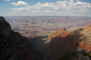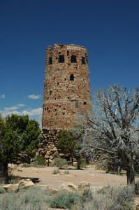 Nu wordt het dan tijd om eens te gaan kijken bij een van de beroemste bezienswaardigheden ter wereld, (als het niet de beroemste is) de Grand Canyon. We hebben ondertussen al een paar scheuren in de aarde gezien, maar dit belooft toch weer (net als alles in amerika) een stuk groter te worden dan we hebben gezien. Het is zo'n 80 mijl vanaf Flagstaff, dus maar niet te laat weg. Na Het ontbijt maar op pad. We zijn op de heenweg via de snelweg 89-noord gereden om af te slaan naar de 64-west om via die weg de oost ingang van Grand Canyon NP binnen te rijden. Als eerste stoppen bij Desert View. Dit uitkijkpunt is ook waar de uitkijktoren staat die over de Grand Canyon heen kijkt. (zie foto's)