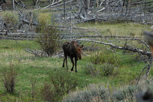Bij de afslag naar de Petrified Tree stond tegen onze verwachting in plots een Moose (Eland) te grazen. Te gek ook die hadden we nog niet gezien. Snel wat foto's gemaakt natuurlijk.