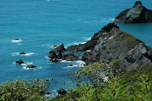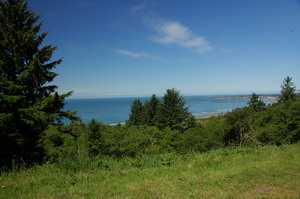 Vandaag zouden we in Crescent City blijven en de Redwoods gaan bekijken. Het ging iets anders, want we besloten om toch langzaam door te rijden naar het zuiden via de snelweg 101 en onderweg de Redwood bomen te bekijken. Hierna gaan we dan weer onze camper stallen voor de nacht bij de volgende KOA langs de snelweg 101. (die bij Eureka) We reden na het ontbijt (weer lekker laat, want het werd weer een korte reis) de snelweg 101-zuid weer op om voorbij Crescent City bij de kust te ariveren Onze eerste ontmoeting met de Pacific Ocean was daar. Bij de 'ingang' van de Redwood National & State Parks (het is een hele verzameling van verschillende parken die de Redwood bomen beschermen) hebben we direct wat foto's gemaakt.