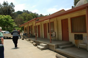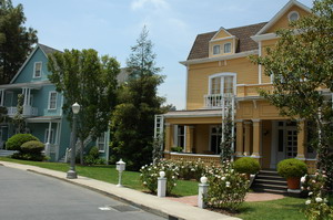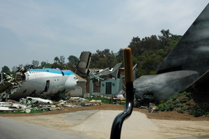 Na dit bezoekje reden we weer verder langs en door enkele buitensets waaronder het wilde westen, de set van de straat waarin alle dames uit de TV serie Desperate Housewives wonen, de set van 'How de Grinch stole Christmas', 'the Bates Motel' en huis uit Psycho (waar we ook nog even konden uitstappen en alles goed van dichtbij mochten bekijken) en als klap op de vuurpijl de set uit 'War of the worlds' waar een vliegtuigcrash volledig is nagebouwd. Hier is overigens een echt Boeing vliegtuig voor gekocht en hierheen gebracht om vervolgens gesloopt te worden. Wat een prachtige set is dit, net echt. Zo echt zelfs dat nieuwszenders uit Los Angels na het zien van de set vanuit hun nieuwshelikopters verschrikt de studio opbelde om navraag te doen of er geen vliegtuig was neergestort. Hierna reden we ook nog langs een grote buitenset waar diverse water/oceaan scenes opgenomen worden. Ze waren ook hier bezig met de voorbereidingen voor opnames van het vervolg op Bruce Almighty. (Evan Almighty)